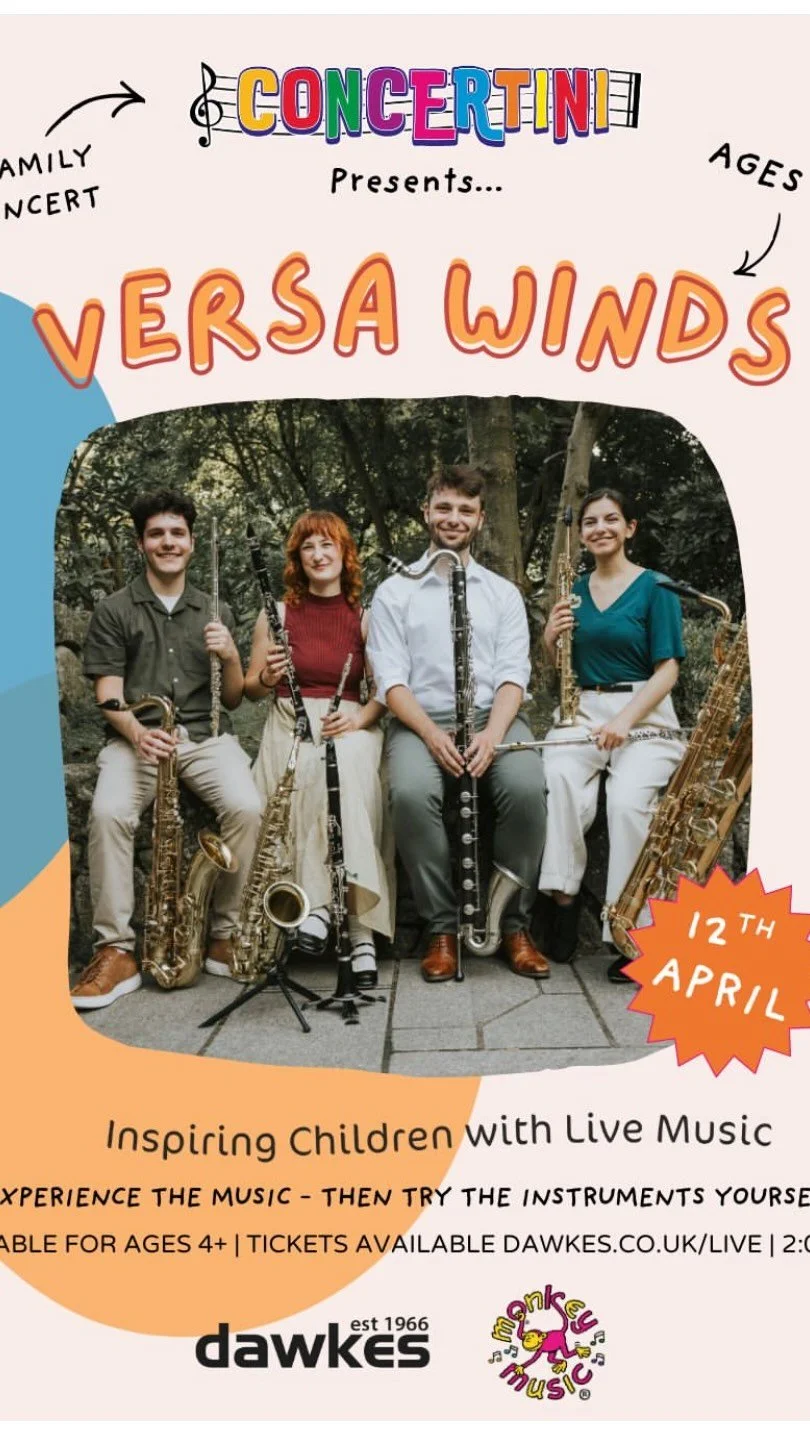 Since their re-launch in August 2024, Versa Winds’ have given performances in iconic venues in and around London including at St James’ Picadilly, King’s Place London, St Bride’s Fleet Street, St Pancras London, St Andrew’s Church, Ampthill, and for Wimbledon International Music Festival. They are excited to give their Royal Albert Hall debut in the Elgar Room in June 2025.
